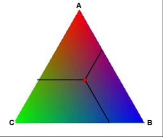 כל נקודה בתוך המשולש מייצגת יחס שונה של המרכיבים; כדי לדעת את היחס יש למתוח מהנקודה קווים מקבילים לצלעות – נקודת החיתוך עם המסגרת היא האחוז של הרכיב הספציפי. הסכימה של שלושת המרכיבים צריכה להיות 100%