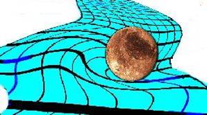 על פי תורת היחסות הכללית של איינשטיין הכבידה היא למעשה עיקום של המרחב-זמן. כל מסה ביקום גורמת לעיוות סביבה ביחס ישר לגודל המסה. דוגמא: אם נניח כדור על יריעה מתוחה הרי שהכדור ייצור שקע מסוים (בתלות במסתו) על פני היריעה. אם כעת נניח כדור קטן על פני היריעה הוא יתגלגל וייפול לעבר הכדור הראשון. אם לחילופין נניח כדור נוסף יותר גדול הוא ייצור שקט יותר נמוך ביריעה וכעת הכדור הראשון יתגלגל לעברו.
