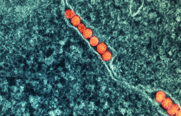 רוב החולים כלל לא יודעים שנדבקו, פחות מאחוז אחד מהם עלול לפתח מחלה קשה, ואפילו קטלנית. נגיפי קדחת מערב הנילוס, צילום במיקרוסקופ אלקטרונים | NATIONAL INSTITUTE OF ALLERGY AND INFECTIOUS DISEASES / NATIONAL INSTITUTES OF HEALTH / SCIENCE PHOTO LIBRARY