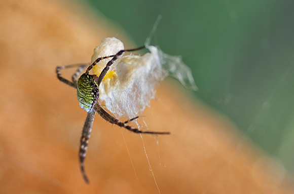 עכבישים משתמשים בקורים לא רק לציד. עכבישת כסופי עם פקעת הביצים שלה ו צילום: Young Swee Ming, Shutterstock