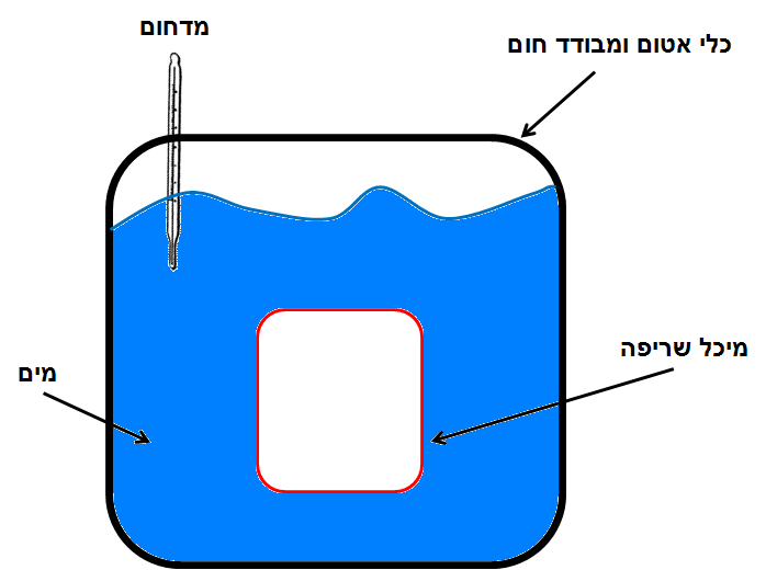 אם רוצים לדעת כמה קלוריות יש בכף שמן קנולה שמים כף שמן בקופסא (ראה איור) ממלאים את המיכל האטום בליטר (1 קילוגרם) מים, מציתים את השמן וממתינים עד שהוא נשרף לחלוטין. מיד לאחר מכן מודדים בכמה עלתה טמפרטורת המים, אם המים עלו מ-24 מעלות ל- 44 מעלות זה אומר שבכף השמן היו 20 קלוריות.