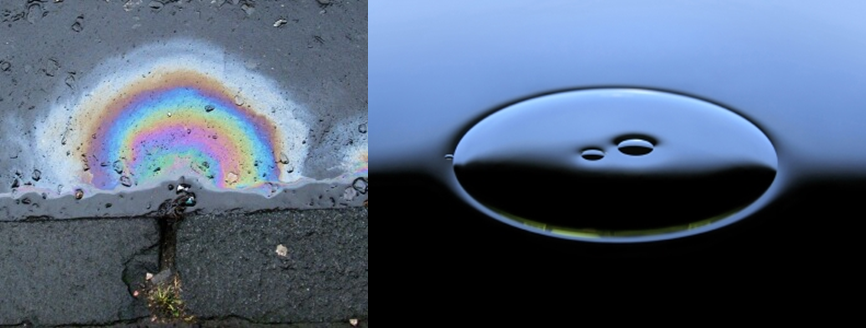 שמנים צפים על מים. משטחם ניתן לחשב את מספר אבוגדרו | תמונות: ויקיפדיה
