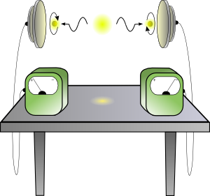 במכניקה הקוונטית, ברגע שאנו מבצעים מדידה על חלקיק מסויים, פוטון לדוגמא, אנו אומרים כי פונקציית הגל קרסה ברגע שאנו מבצעים את המדידה, הדבר בא לידי ביטוי בחלקיק נוסף במערכת!
