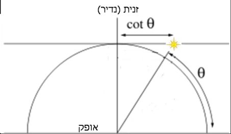 אורך הצל תלוי בקוטנגנס של זווית ההגבה של השמש מהאופק.