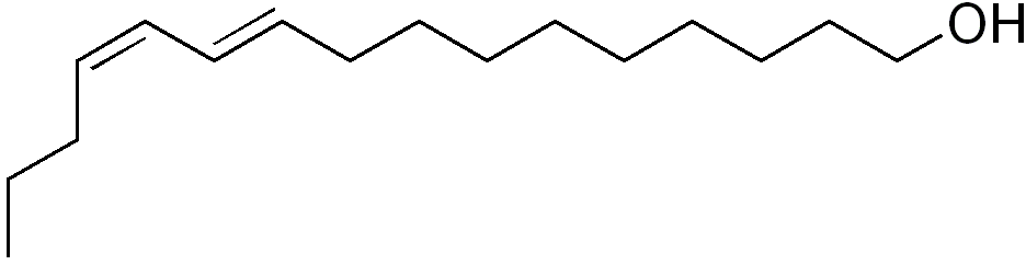 בתמונה מולקולת הפרומון הראשונה שהתגלתה (בומביקול, (Bombykol) במין של עש ב1959 (ויקיפדיה)