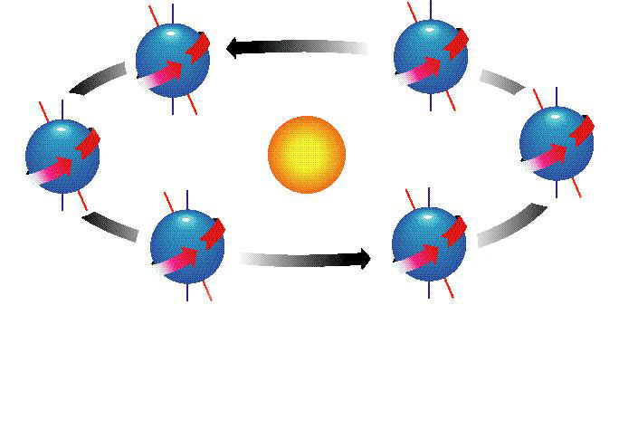 סיבוב הארץ סביב צירו הינו בלתי תלוי בהקפת הארץ השנתית סביב השמש.