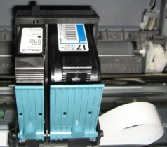 (2). מחסנית דיו צבעונית המכילה דיו בצבעים אדום, כחול וצהוב (או ליתר דיוק cyan, magenta and yellow).