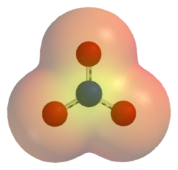 מפת פוטנציאלים חשמליים ביון של ניטראט. אזורים אדמדמים הם בעלי אנרגיה נמוכה יותר מצהובים (ויקיפדיה)