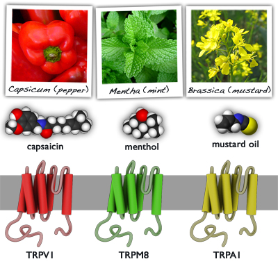 (ישנו סוג שלישי TRP-A1 שנפתח כתוצאה מרכיב שמן החרדל בחרדל).