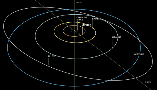 ב-2 מימדים אנו רואים כי פלוטו חותך את נפטון. אך למעשה שניהם נמצאים במישורים שונים ואינם מתנגשים.