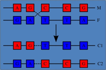במהלך יצירתם של תאי המין (גמטות) מתרחשים אירועי החלפה של מקטעי דנ"א בין הדנ"א שמקורו מהאב לבין הדנ"א שמקורו מהאם.