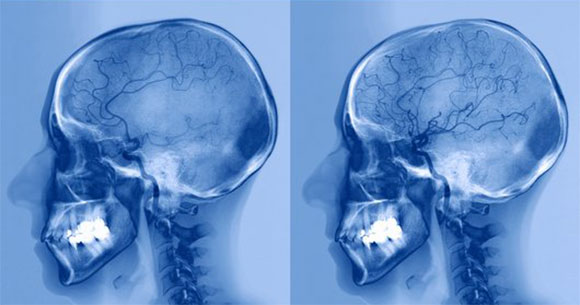 סילוק החסימה בתוך שעתיים מרגע הפגיעה ההתחלתית מגביר את סיכויי ההחלמה. צנתור עורק במוח | איור: Christoph Burgstedt, Science Photo Library
