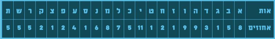 ככל שהטקסט המנותח ארוך יותר, כך הסטטיסטיקה תהיה מהימנה יותר ותעיד על תכונות השפה. הטבלה שלנו עצמה לא לגמרי מדויקת, כיוון שמטעמי נוחות הערכים שבה מעוגלים למספרים שלמים. ובכל זאת אפשר להבחין בה בקלות בדומיננטיות אותיות התנועה אהו"י, שתדירותן עולה על זאת של כל העיצורים פרט למ'. בשפות לטיניות התופעה בולטת עוד יותר עקב העובדה שכל מילה בהן חייבת לכלול אות תנועה אחת לפחות. לפי התדירות שמצאנו, האות השכיחה ביותר היא י' (דרגה 1), אחריה ו' וה' (דרגה 2), א' ומ' (דרגה 3) וכן הלאה.