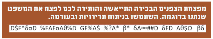 יש בידינו משפט שהוצפן באמצעות החלפת כל אות בסמל. נבחן את המשפט המוצפן הבא: