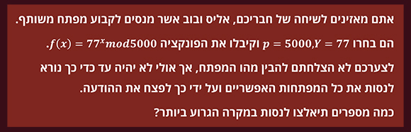 *בבחירת המספרים הראשוניים Y, p יש לעמוד בכמה תנאים שלא נפרט כאן.