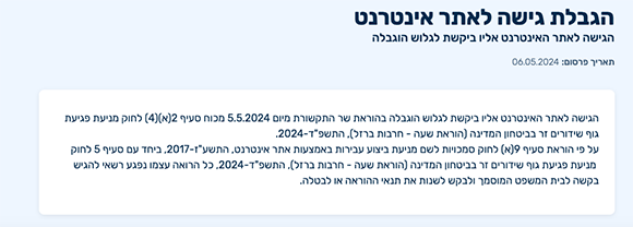 חסימה מתוקף החוק שמטרתו להצר את צעדיו של ערוץ אל-ג'זירה בישראל. ההודעה באתר האינטרנט של משרד התקשורת | צילום מסך מאתר gov.il