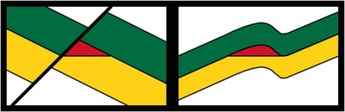 סלע מאגר (צהוב) אשר בתוכו הידרוקרבון (אדום) התחום בסלע חיפוי (ירוק), התמונה לקוחה מויקיפדיה.