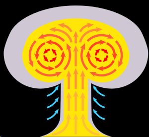 ה"פטרייה" יכולה להיווצר אחרי כל פיצוץ גדול דיו, ולאו דוקא רק לאחר פיצוץ גרעיני, אם כי זהו ההקשר המקובל להיווצרותה. ה"פטריה" הינה ענן מסוג קומולוס, של אדי מים או שפוכת (כגון אפר). כאשר מתרחש פיצוץ גדול, בבת אחת נוצר איזור של גזים בעלי צפיפות נמוכה ובעלי טמפרטורה גבוהה. צביר הגזים עולה במהירות, מה שגורר בעקבותיו מערבולות זרמי אוויר חזקות המפותלות סביב קצותיו כלפי מטה, ונראות על-כן כטורואיד, המהווה את "ראש" ה"פטרייה", ועמודה של עשן ושפוכת, הנשאבים מלמטה עקב שינויי הלחצים, ויוצרים את "רגל" ה"פטרייה". יש הבדל במה שיוצר את ה"פטרייה" בפיצוץ פצצת גרעין לעומת פיצוץ פצצת מימן, ולעומת התפרצות געשית למשל, אך התוצאה דומה.