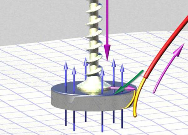 הכוח הינו חזק יותר אם הזווית ביניהם היא 90 מעלות. כיוון הכוח הינו מאונך לשני כיוונים אלו. עבור הזרם שזורם בבורג ובתיל, הכוחות הם מינימליים משום שכיוון הזרם הינו מקביל לשדה המגנטי. אולם, יש כוח ניכר על המטענים החשמליים אשר זורמים אופקית דרך המגנט, ב 90 מעלות לכיוון המאונך של אוריאנטציית השדה המגנטי. על כן, כוח, חץ ירוק באיור, נוצר בכיוון השלישי אשר גורם לסיבוב המגנט.