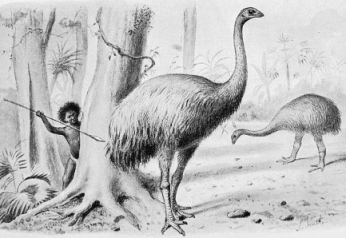 עד לפני מספר מאות שנים היה קיים אפילו עוף גדול יותר, המואה (moa). המואה היה נפוץ בניו-זילנד והוא התנשא לגובה של מעל ל3 מטר וחצי. זהו העוף הידוע היחידי שהתקיים ללא כנפיים או עדות חיצונית לכנפיים. המואה חי לו בבטחה אם כמעט אפס אויבים עד שהאדם פלש לאי וגרם להכחדתו בסביבות המאה ה 16.