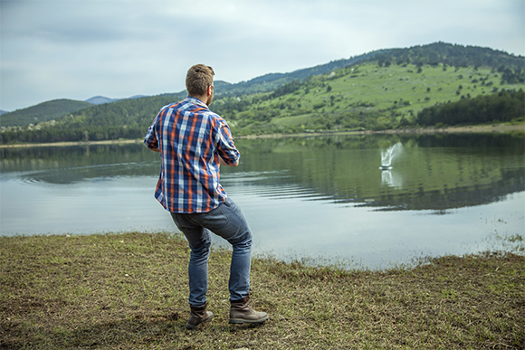 נדרשת תנועה סיבובית מהירה וזווית פגיעה של כ-20 מעלות. בחור מקפיץ אבן על מי אגם | Wirestock Creators, Shutterstck