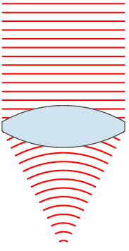 בתמונה למטה ניתן לראות דוגמא של עדשה בעלת 3 מוקדים שונים. ניתן לראות למשל איך אזורים שונים בעדשה ירכזו את אורך הגל של הצבע הירוק במוקדים שונים: לפני, אחרי או בדיוק על הרשתית (צד שמאל). מצד ימין ניתן לראות איך אורכי גל שונים מתרכזים ע"י אזורי העדשה השונים בדיוק על הרשתית (ה"מוקד").