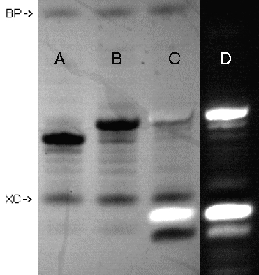 אוליגונוקלאוטידים סינטטיים מסומנים בסמן פלורסנטי הפולט אור באורך של 254nm (ויקיפדיה).