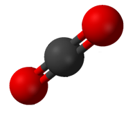 דבר ראשון – את צודקת בעובדות שציינת. פחמן דו-חמצני, כשמו כן הוא, בנוי ממולקולות של שלושה אטומים – אטום אחד של פחמן שמשני הצדדים שלו יש אטומי חמצן, אפשר לראות זאת בתמונה הבאה (חמצן באדום, פחמן באפור כהה):