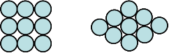 3. אופן סידור האטומים במצב מוצק – משפיע על צפיפותם, יש סידורים צפופים יותר וצפופים פחות. התמונה הבאה מדגימה זו: