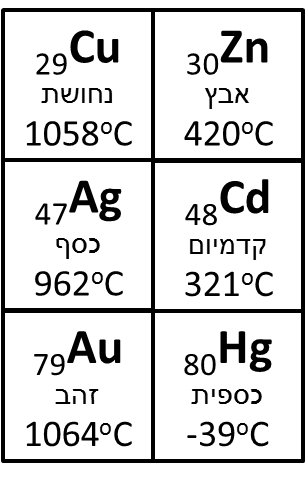 נקודות ההיתוך של היסודות הנמצאים בטור של הכספית בטבלה המחזורית, ושל היסודות בטור הקודם.