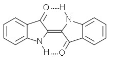 אינדיגו כחול, המולקולה עשירה בקשרים כפולים מצומדים (התמונה נלקחה מויקיפדיה)