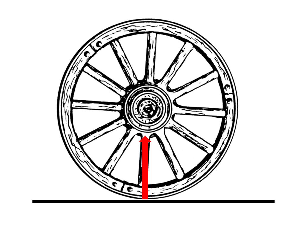 מכיוון שכפי שהוסבר למעלה החישורים בגלגל האופניים מצויים במצב של מתח גם כאשר הגלגל לא מועמס נשאלת השאלה האם כאשר הגלגל מועמס בנסיעה הציר נמשך כלפי מעלה ע"י החישורים שמעליו או נדחף כלפי מעלה על ידי החישורים שמתחתיו.