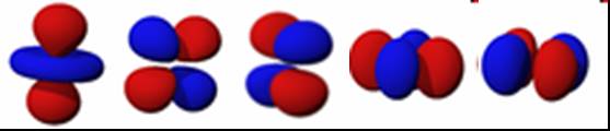 ענני האלקטרונים באורביטלים מסוג d (למעלה) ו- fלמטה (עיבוד מתוך ויקיפדיה)