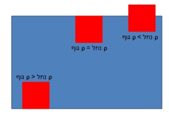 אם צפיפות הגוף גדולה מצפיפות הנוזל הוא ידחוק יותר מים מנפחו ולכן התוצאה תהייה שהוא ישקע.