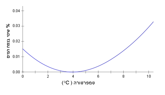 שינוי בנפח של מים עם שינוי הטמפרטורה