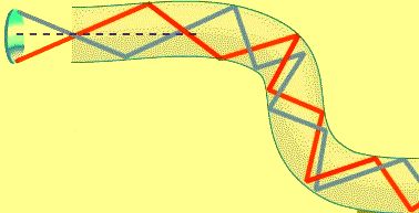 משמאל קונוס האור (מגדיר זווית הכניסה המקסימאלית לסיב). תמונה נלקחה מויקיפדיה.