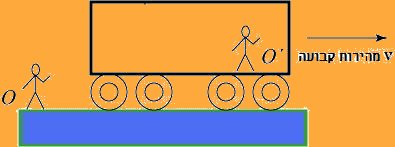 באיור שני מערכות יחוס אינרציאליות O ו O'. בשני מערכות היחוס חוקי הפיזיקה זהים, כל אחת מהן טוענת "שהיא זו שבמנוחה".