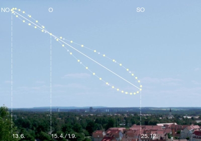 וכן את הנקודה בה השמש עוברת פעמיים במסלול מהנקודה הגבוה לנמוכה וחזרה.