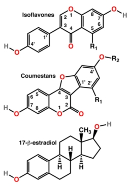 תמונה של פיטואסטרוגן (למעלה) ואסטרדיול (למטה). נלקח מויקיפדיה.