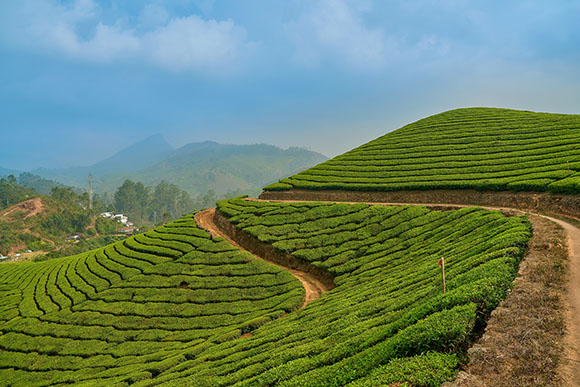 העיר מונאר (Munnar) שבדרום הודו ידועה בנוף חקלאות התה המרהיב בה. חקלאות תה במונאר | מקור: PhotopankPL, Shutterstock