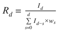 עבור כל יום (d) מחושב מקדם ההדבקה לאותו יום (Rd) על פי חלוקה של מספר הנדבקים החדשים באותו יום בפועל (Id), במספר האנשים הצפויים להידבק באותו יום על סמך הנדבקים שאותרו בימים הקודמים.