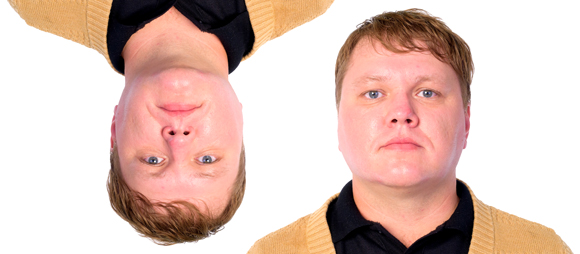 במבט ראשון רובנו לא נבחין בהבדל משמעותי, אולם אם ניישר אותם הכול ישתנה. כהרף עין נגלה שהתמונה השמאלית רגילה לגמרי, ואילו בימנית העיניים והפה התהפכו ב-180 מעלות ונוצר מראה מוזר ולא אנושי.