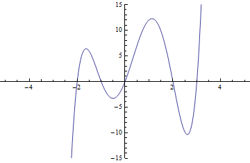 גרף של משוואה ממעלה חמישית – הפתרונות הם החיתוכים עם ציר X.