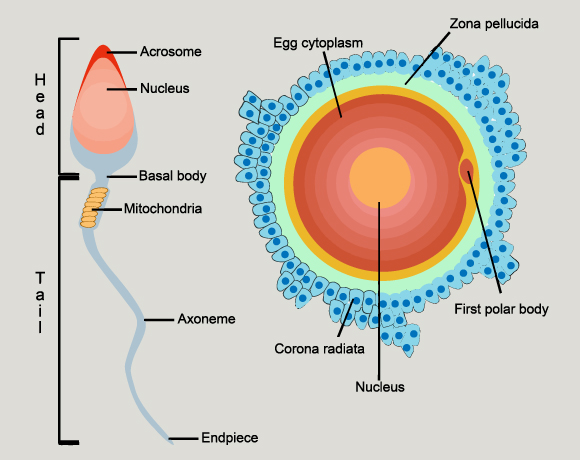 In reality, the egg cell is much, much, larger than the sperm cell. A schematic diagram of the structure of the two gametes | Illustration: ducu59us, Shutterstock