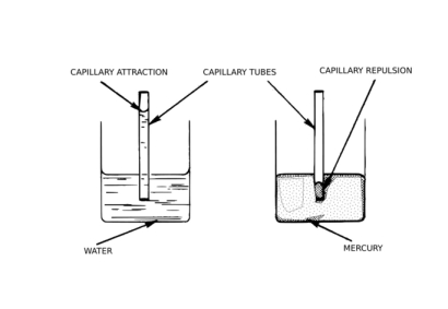 Cohesion – the attractive forces between similar molecules or atoms, in our case the molecules or atoms of the liquid. Water, for example, is characterized by high cohesion since each water molecule can form four hydrogen bonds with neighboring molecules.