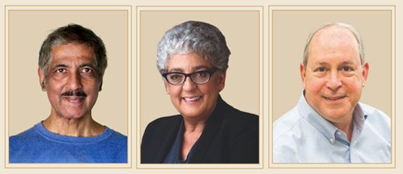 Pioneering advancements in understanding plant adaptation and enhancing their agricultural productivity to feed humanity. From right: Elliot M. Meyerowitz, Joanne Chory, Venkatesan Sundaresan | Photos courtesy of the Wolf Foundation.
