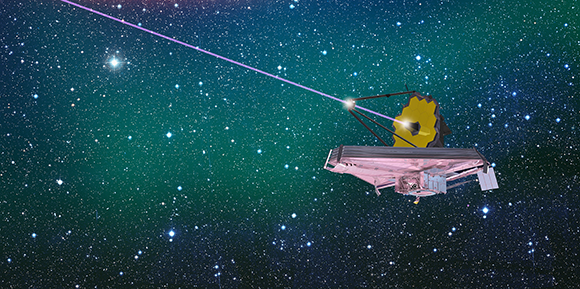 Analysis of observations on dwarf galaxies reveals that they emitted light at a much higher intensity than expected. The James Webb Space Telescope in space | muratart, Shutterstock.