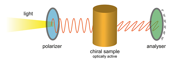 Louis Pasteur discovered that one form of tartaric acid crystals could deflect polarized light, while the other could not. Substances with different chirality deflect light differently | magnetix, Shutterstock