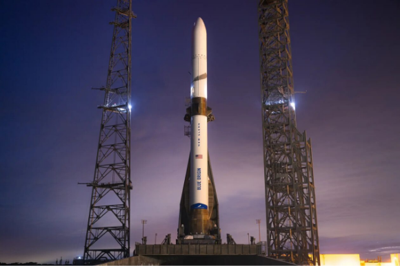 A new era of heavy-lift rocket competition? The New Glenn rocket awaits its inaugural launch on the pad in Florida | Photo: Blue Origin