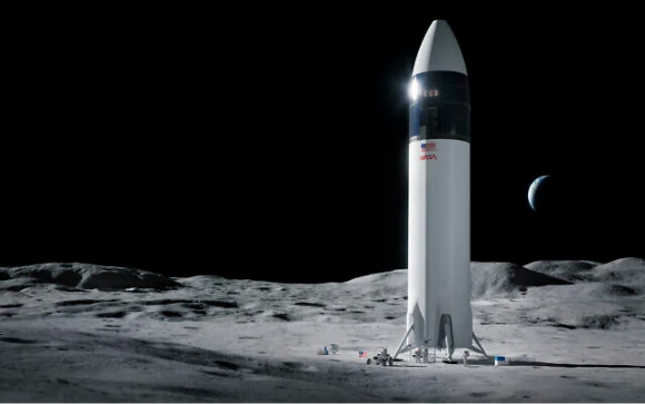 Will it happen or not? An illustration of Starship configured as a crewed lunar lander for NASA’s Artemis program | Source: SpaceX/NASA